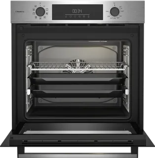 Электрический духовой шкаф; 9 режимов; Приготовление с паром; LED дисплей; утапливаемые поворотные переключатели; каталитическая очистка (боковые/задняя панели); телескопические направляющие на одном уровне; объем - 72л; 2 стекла дверцы; 1 противень; Плавное закрытие дверцы SoftClose; Цвет: Нержавеющая сталь; Материал панели управления: Металл.