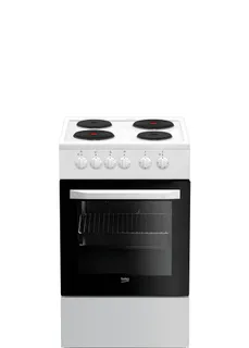 Отдельностоящая электрическая плита шириной 50 см имеет удобное механическое управление с индикацией работы и оснащена 4 конфорками разного диаметра. Электрическая духовка объемом 60 л работает в режимах верхнего и нижнего нагрева, имеет функцию паровой очистки и полностью стеклянную дверцу для удобного ухода за плитой. В комплектацию плиты входят стандартный эмалированный противень и решетка, а внизу расположен отсек с откидной крышкой для хранения посуды.