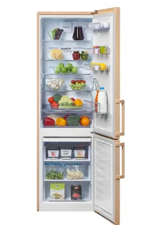 Двухкамерный холодильник нежного янтарного цвета с электронным управлением и надежными полками из закаленного стекла. Система охлаждения NoFrost Dual Cooling предотвращает образование льда на продуктах, а также препятствует смешиванию запахов холодильного и морозильного отделений. Холодильник имеет специальное отделение для фруктов и овощей Everfresh+, которое позволяет продлить свежесть продуктов до 30 дней.