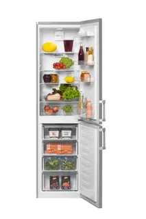 Элегантный холодильник в серебристом цвете отлично подойдет для современной кухни. Система охлаждения NoFrost Dual Cooling разделяет воздушные потоки в холодильной и морозильной камерах и предотвращает образование льда на продуктах и стенках холодильника. Сэкономить траты на электричество позволяют режимы Eco Mode и «Отпуск», которые легко настроить на сенсорном дисплее холодильника.
