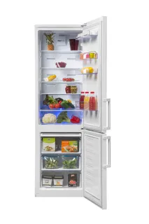 Вместительный белоснежный холодильник отлично подойдет для тех, кто любит много готовить. Он оснащен системой двухконтурного охлаждения NoFrost Dual Cooling, которая разделяет воздушные потоки между холодильной и морозильной камерами и регулирует уровень влажности внутри, предотвращая образование льда на стенках и продуктах.