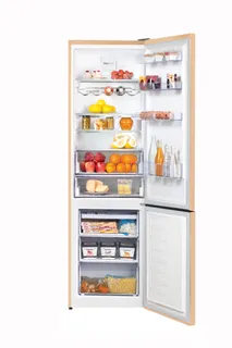 Бежевый двухкамерный холодильник с электронным управлением, общим объемом 400 л и энергосберегающим режимом «Отпуск». Двухконтурная система охлаждения NoFrost Dual Cooling (Ноу Фрост) разделяет воздушные потоки в холодильной и морозильной камерах, не допуская смешивания запахов и образования льда на стенках, поэтому холодильник не нужно регулярно размораживать. Холодильник оснащен отсеком для фруктов и овощей Everfresh и ящиком с температурой 0-3 ˚С для мяса и рыбы, которые позволяют дольше хранить свежие продукты, а также камерой быстрой заморозки для продуктов комнатной температуры.