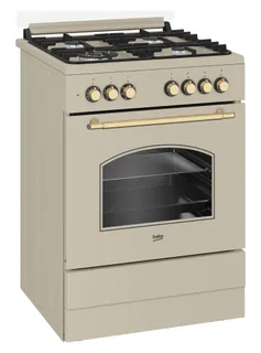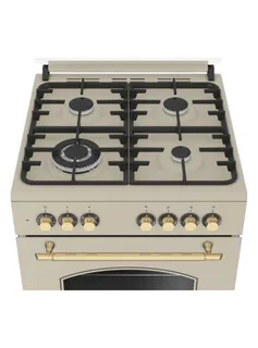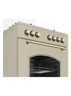 Комбинированная плита кремового цвета выполнена в стиле рустик и оснащена удобным механическим управлением. Плита сочетает газовую варочную поверхность с встроенным электроподжигом и чугунными решетками и электрический духовой шкаф с несколькими режимами работы, включая верхний и нижний нагрев, гриль и конвекцию, быстрый разогрев и функцию очистки паром. Система газ-контроля конфорок автоматически прекращает подачу газа, если пламя случайно потухнет, гарантируя полную безопасность, а качественное эмалированное покрытие духовки облегчает очистку после использования плиты.