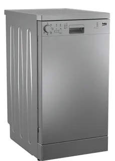 Элегантная посудомоечная машина серебристого цвета имеет класс энергоэффективности А, экономично расходует воду – до 10,5 л при каждом полном цикле – и работает с низким уровнем шума. При ширине всего 45 см посудомоечная машина вмещает до 10 полных комплектов посуды и предлагает 5 программ мытья, функцию отложенного старта на 3, 6 и 9 часов и возможность работы при половинной загрузке. Системы защиты от протечек и смягчения воды обеспечивают безопасную и долговечную работу посудомоечной машины.